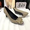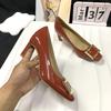 Spot second hair! Grape mother same shoes French temperament evening wind square buckle thin high heel square head shallow mouth commuter shoes