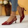French Style Women's 2025 Patent Leather Spring Autumn High Heels Red Pointed Toe Butterfly Knot Sandals Low Cut Thin Heel