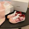 Grape mother, the same mango head leather casual sports shoes, crooked head, contrasting colors, splicing, inner height increase, lace-up, Germ
