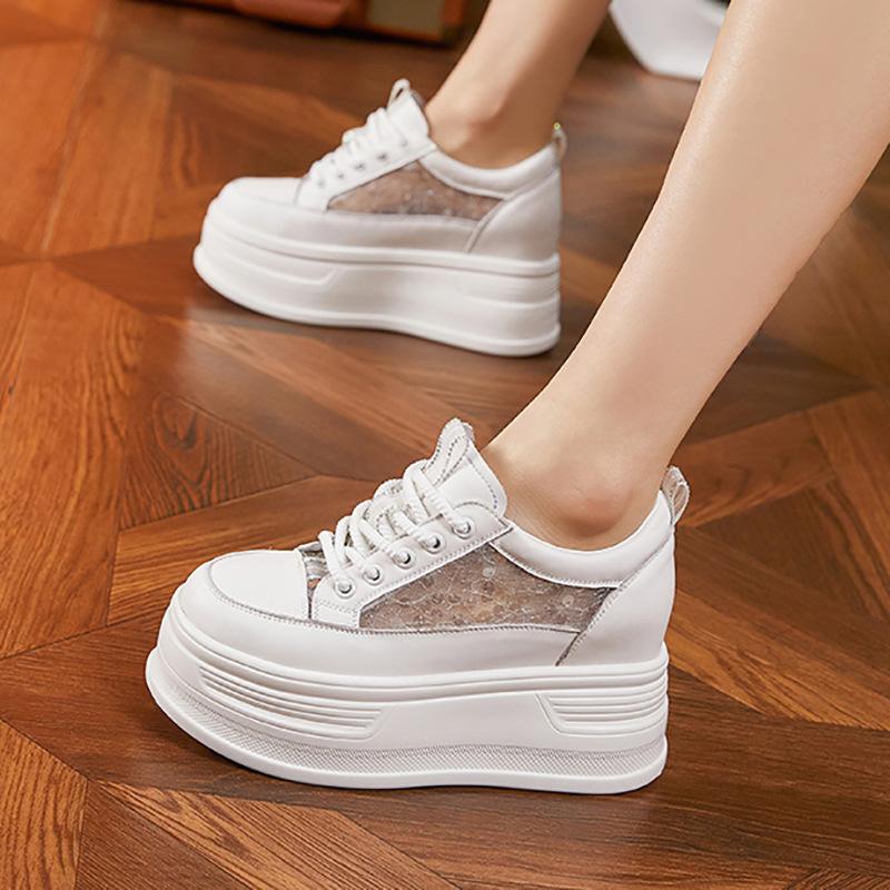 Mesh hollow white shoes women's 2025 new spring and summer breathable versatile thick-soled muffin shoes women's inner height-increasing women's shoes