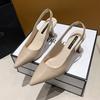 Baotou sandals women's 2025 summer new French versatile pointed thick heel high heels simple temperament celebrity women's shoes
