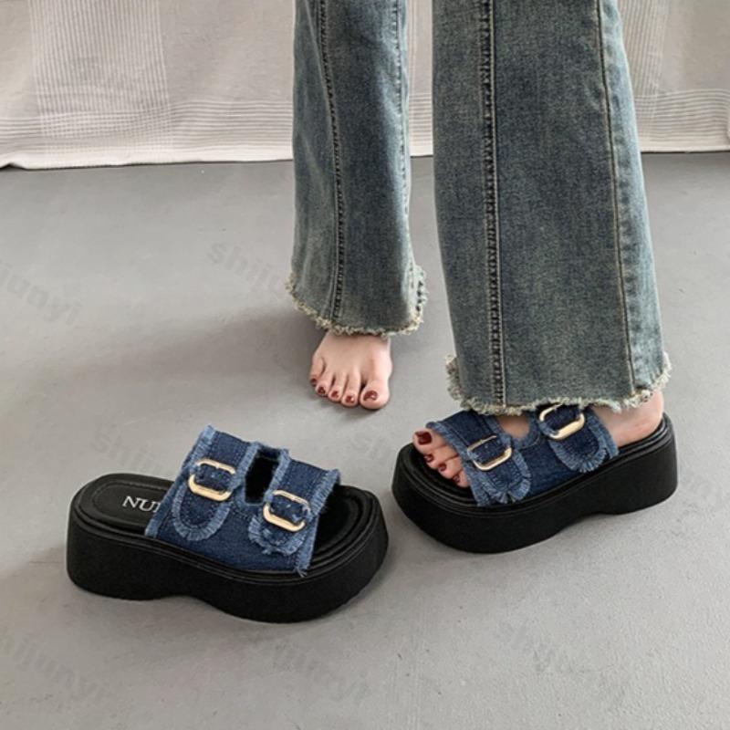 Fashion Summer Women Slippers Flats Platform Buckle Cowboy New Trend Sandals 2025 Designer Slingback Casual Woman Flip Flops Sandalias
