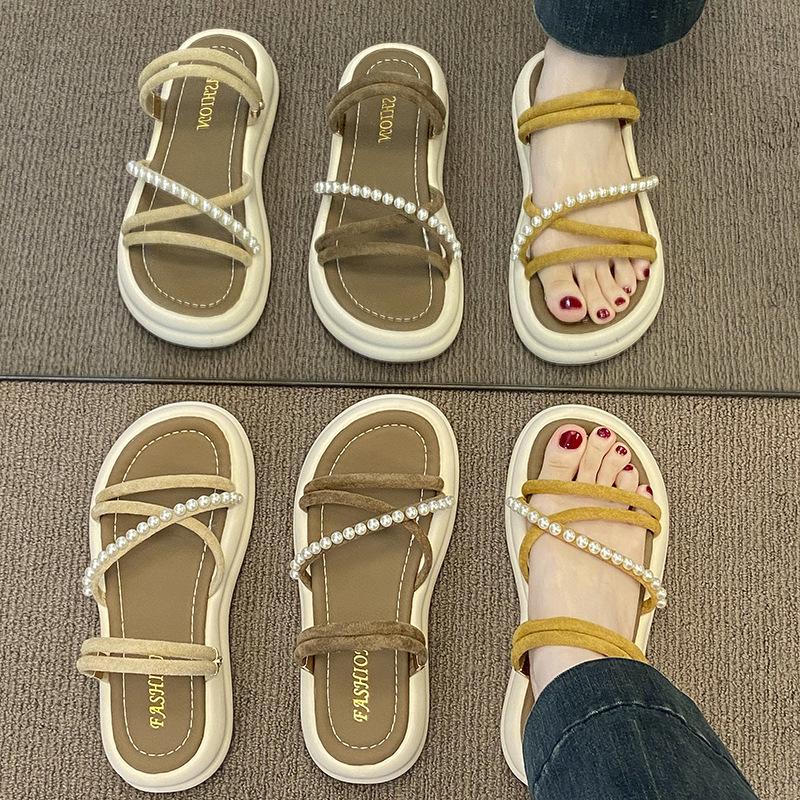 French beautiful thick-bottomed cool slippers female summer wear 2025 new with skirt fairy wind beach slippers one-word drag