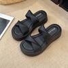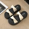 Women's flat-bottomed cool slippers, new summer Korean version thick-bottomed one-word with outer wear, casual round-head slippers 2025 open-toed