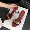 Divat SUOJIALUN 2025 Nyári Új Márka Női Papucs Divat Nyitott Orrú Belecsúszós Női Elegáns Papucsok Fém Csat Vékony Magassarkú Pumpák
