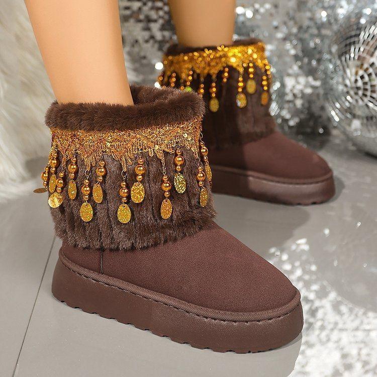 Niche fringed beaded snow boots autumn and winter new high-end comfortable versatile thick-soled short boots children