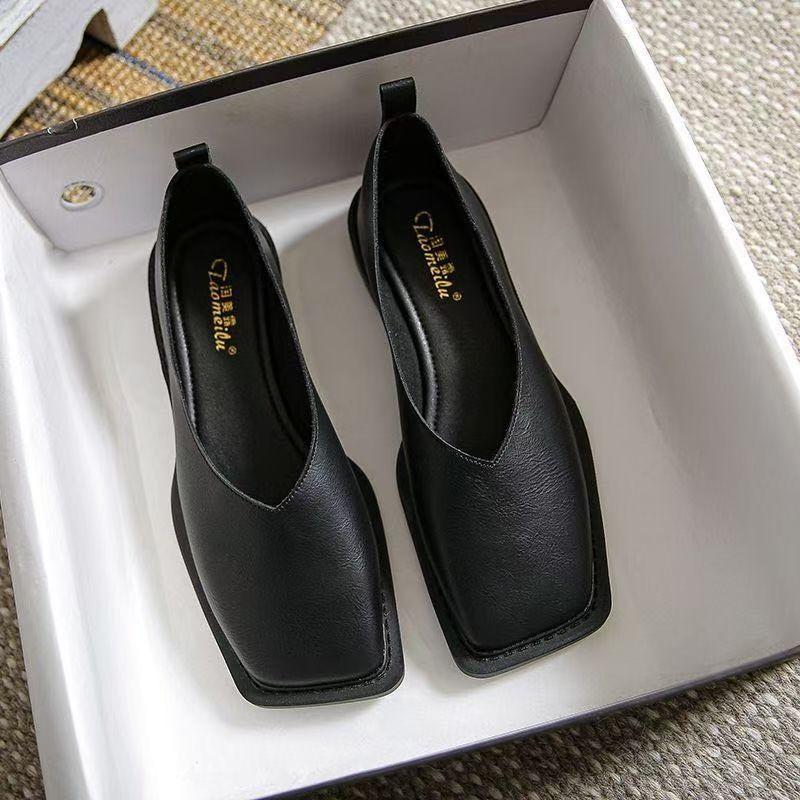 Square head thick heel Mary Jane shoes British style small leather shoes lazy single shoes women's new French retro