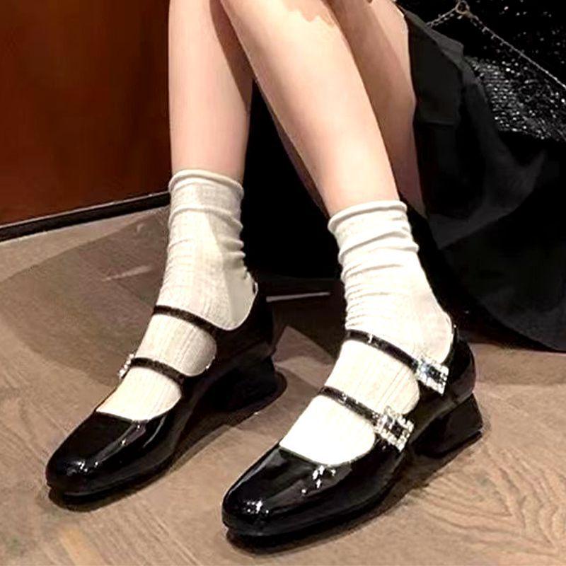 French rhinestone Mary Jane shoes women's spring and autumn new versatile and thin thick heel temperament wedding shoes light mouth single shoes