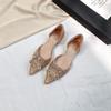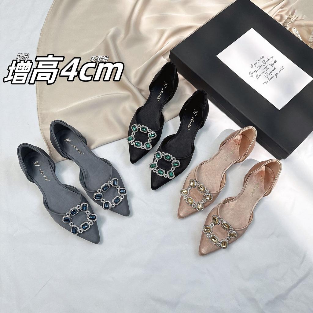 2025 spring and summer new satin rhinestone square buckle pointed head shallow mouth flat sole shoes female hollow fairy style crystal wedding shoes