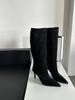 Francia Hegyes Orrú Széles Szárú Csizma Nőknek Modern Cipő Retro Felhúzható Térdcsizma Vékony Magassarkú Lovaglócsizma Zapatos