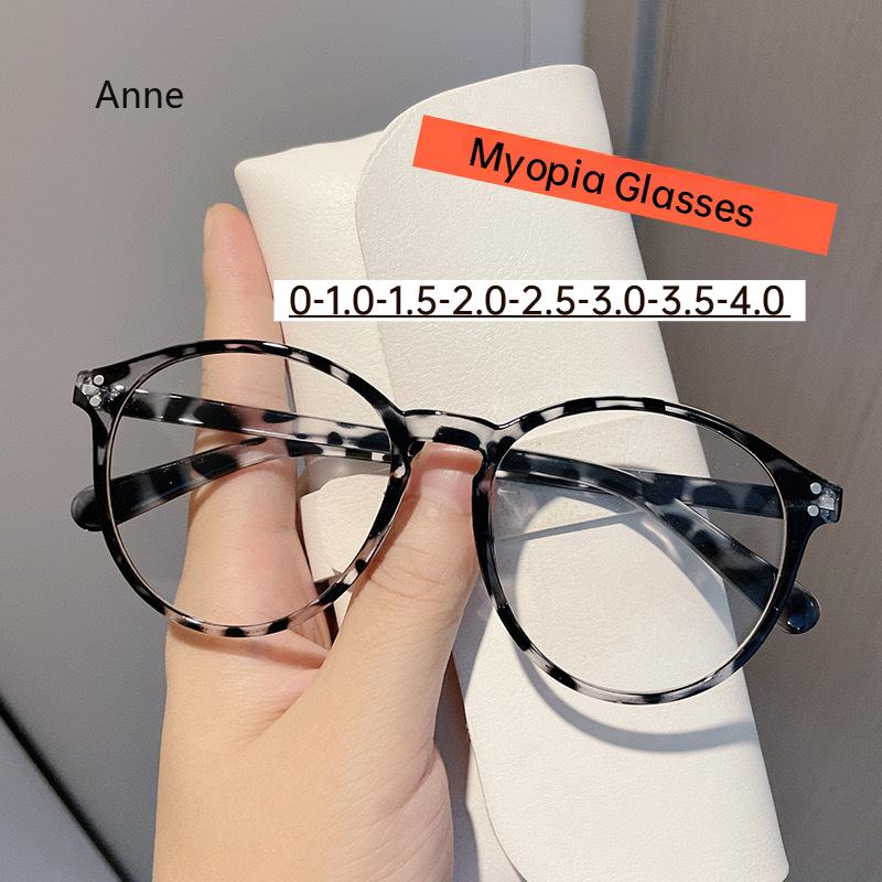Women Myopia Glasses Men Fashion Anti Blue Light Computer Glasses Vintage Round Full Frame Eyeglasses -1.0 -1.5 -2.0 -2.5 ~ -4.0