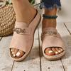 Foreign trade large size summer new slope heel thick-soled slippers metal decoration Roman style fish mouth beach cool slippers