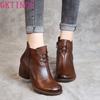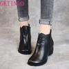 Fashion GKTINOO Spring Autumn Women Boots Genuine Leather Thick Heels Ankle Boots For Women Shoes Retro Handmade Zipper Short Boots