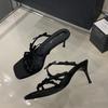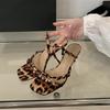 Fashion Bailamos Summer Fashion Band Woman Slippers Leopard Narrow Thin Low Heels Party Stripper Ladies Mules Slides Zapatos Mujer