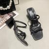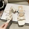 Korean version thick heel square head one-word slippers women's spring 2025 new simple temperament small fragrant style high heel cool slippers