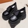 Brit stílusú egycipő női vastag sarkú csúszásmentes 2025 tavasz új kis bőr cipő puha bőr vastag talp négyzet alakú csat tépőzáras mokaszin