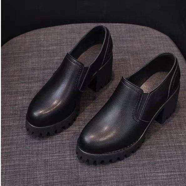 High-heeled loafers for women's 2025 spring and autumn new soft leather thick heel thick sole professional single shoes work small leather shoes on