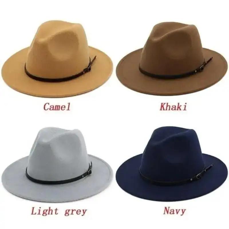 Men Fashion Simple Solid Color Vintage Wide Brim Hat Church Party Felt Jazz Cap Fashion Travel Hats Women Accessories Gifts