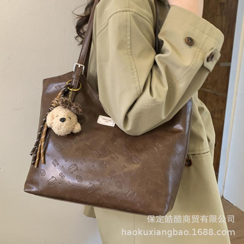 Simple retro Maillard brown bag women's 2025 new commuter large-capacity shoulder bag premium tote bag