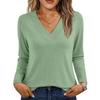 Women's Casual Fashion Brushed Solid Color Long-sleeved V-neck Top T-shirt