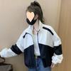 Windbreaker Jacket Women Cropped Spring Plus Size Casual Versatile Loose Color Block Baseball Top
