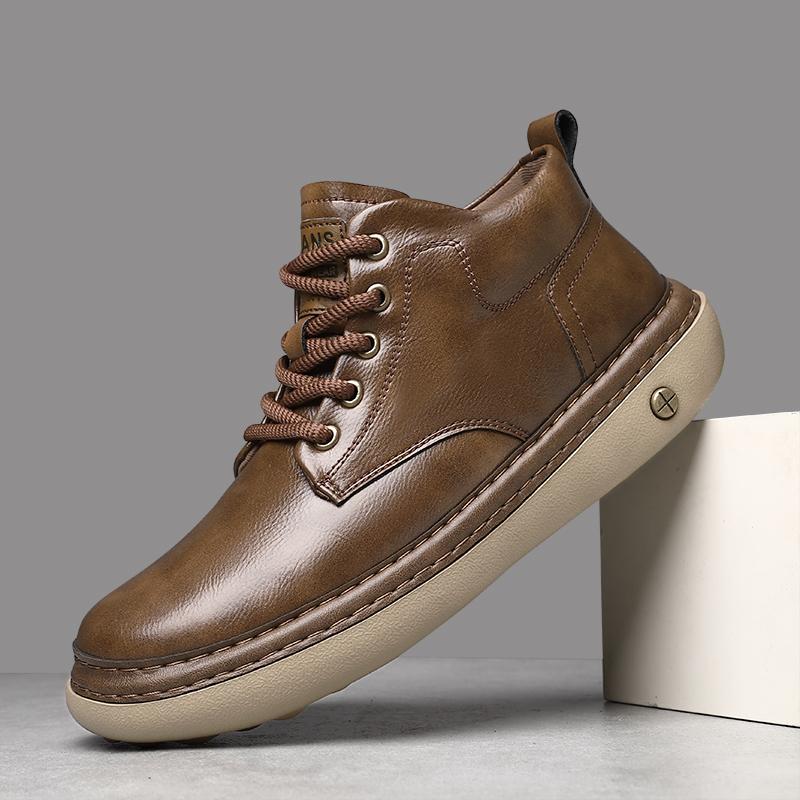 Kézi varrású Valódi Bőr Férfi Csizma Kényelmes Alkalmi Bőr Cipő Férfiaknak Bokacsizma Nagy Méretű Munkavédelmi Cipő