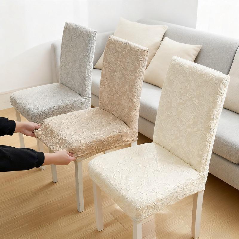 Jacquard Velvet Solid Color Stretch Seat Covers Anti-Slip Stain-Resistant Universal Full-Coverage Living Room & Dining Room Minimalist Chair Covers