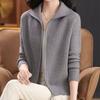 Women's Autumn/Winter 2025 Turn-Down Collar Double Zipper Wool Cardigan Coat - Fashionable Outerwear for Moms