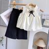 Girls' Summer Flutter Sleeve Top & Wide-Leg Pants Set - New Fashion Design (AXA736)