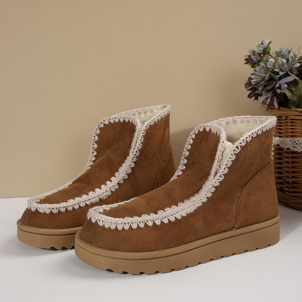 Téli meleg lapos talpú európai és amerikai határokon átnyúló hócsizma, új nagy méretű külkereskedelmi bársonnyal bélelt vastagított szárú pamutcipő nőknek