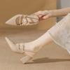 Nude high heels female pointed new autumn patent leather back empty temperament single shoes fairy thick heel summer sandals