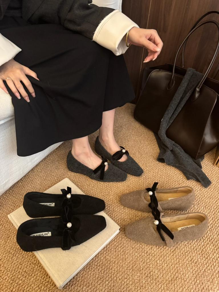 2025 winter new Korean version bow inner height increase versatile commuter square head inner velvet single shoes cotton shoes