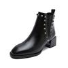 Őszi Új Nude Csizma Hegyes Orrú Rövid Csizma Női Fűzős Szegecses Közepes Sarok Motoros Csizma Vastag Sarok és Bokacsizma