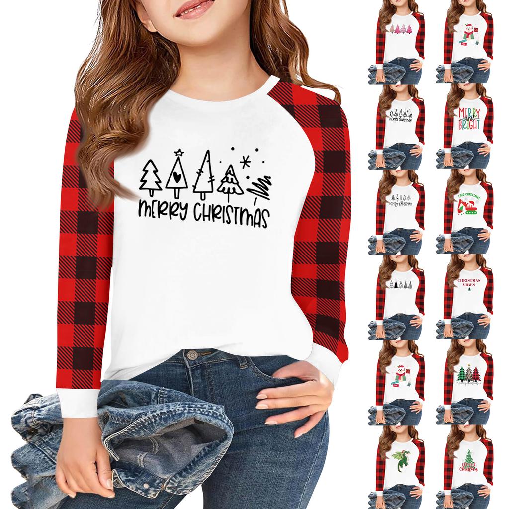 Lányok Hosszú Ujjú Karácsonyi Nap Pólók Gyerekek Őszi Felsők Kereknyakú Alap Pólók 5-14É