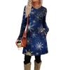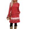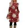 Női divatos hétköznapi ruha zsebekkel, díszgombokkal, karácsonyi mintákkal, kerek nyakkivágással és hosszú ujjakkal