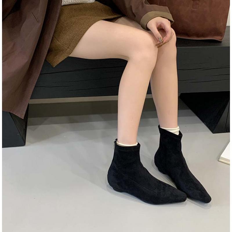 2025 új őszi és téli hegyes orrú lapos talpú rövid csizma női velúr vékony csizma sokoldalú elasztikus csizma sokoldalú rövid csizma nőknek