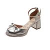 Fashion Bow Mary Jane Baotou Sandals Women 2025 Summer New Outside Wear Fairy Skirt Fashion Block Heel High Heels