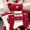 New Year's Festive Red Socks for Women, Autumn and Winter, with Twisted Fleece Balls, Snowflakes, Warm and Comfortable Rabbit Fleece Pile Socks