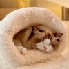 Warm Cat Sleeping Bag Semi-Enclosed Cats Dogs Pad Soft Plush Winter Warm Cozy Beds Accessories For Cats Dog