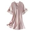 Lace Soft Cotton Short Sleeve Pajama Navy Size L [cheibear] Women's Nightshirt, Sleepshirt, Loungewear, Nightgown, Blue,