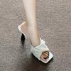 Fashion Summer New Slippers Women Fashion Square Head Open Toe Fold Temperament Anti-slip Wear-resistant Stiletto Heels