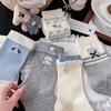 Little Dog Embroidery Gray-blue Series Socks, Women's Mid-calf Socks, Versatile Cotton Socks, Boneless Cartoon Cute Pile Socks