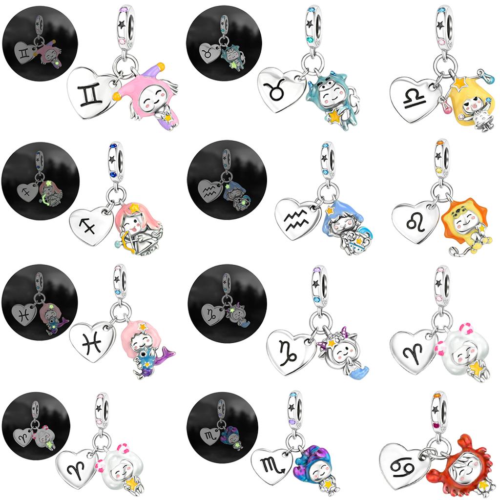 Original Copper Charms Lucky Signs Of The Zodiac Beads Luminous Stars Pendants Fit Bracelet Diy Fine Jewelry Gift