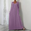 Women's Fashionable Solid Color V Neck Long Sleeved Casual Loose Fitting Pullover Long Dress