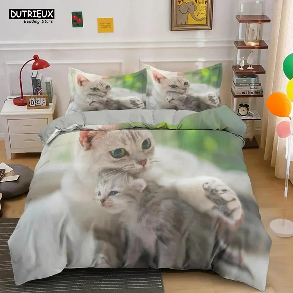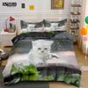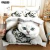 Luxury New 3D Print Cute Baby Cat Bedding Set White Black Kitten Bed Linen Single Double Duvet Cover Kids Girls Dogs Room Decor