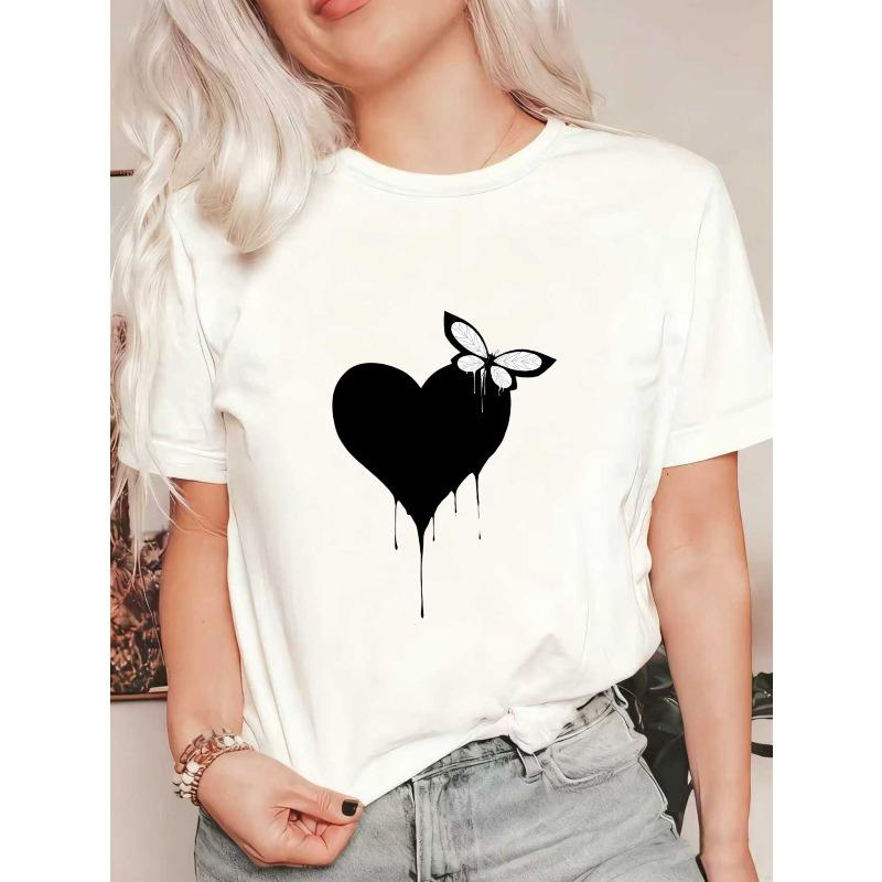 Black Oversized T Shirt With Heart And Butterfly Print For Casual Wear