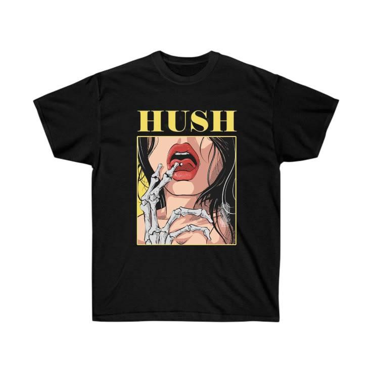 Hush Grafikus Póló, Vicces Idézetes Póló, Pimasz Póló, Aranyos Puszi Póló, Hétköznapi Póló