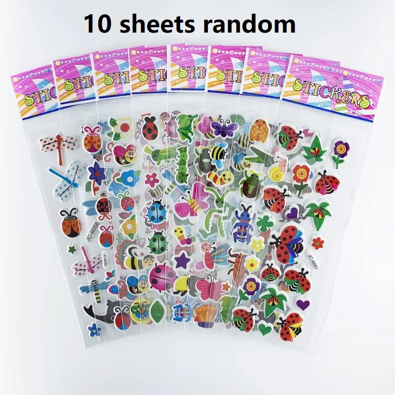 10 Sheets/Set Cartoon Insect Bee Ladybug Sticker Cute 3D Bubble PVC Scrapbooking Stickers for Children Boy Girl Cognitive Toys