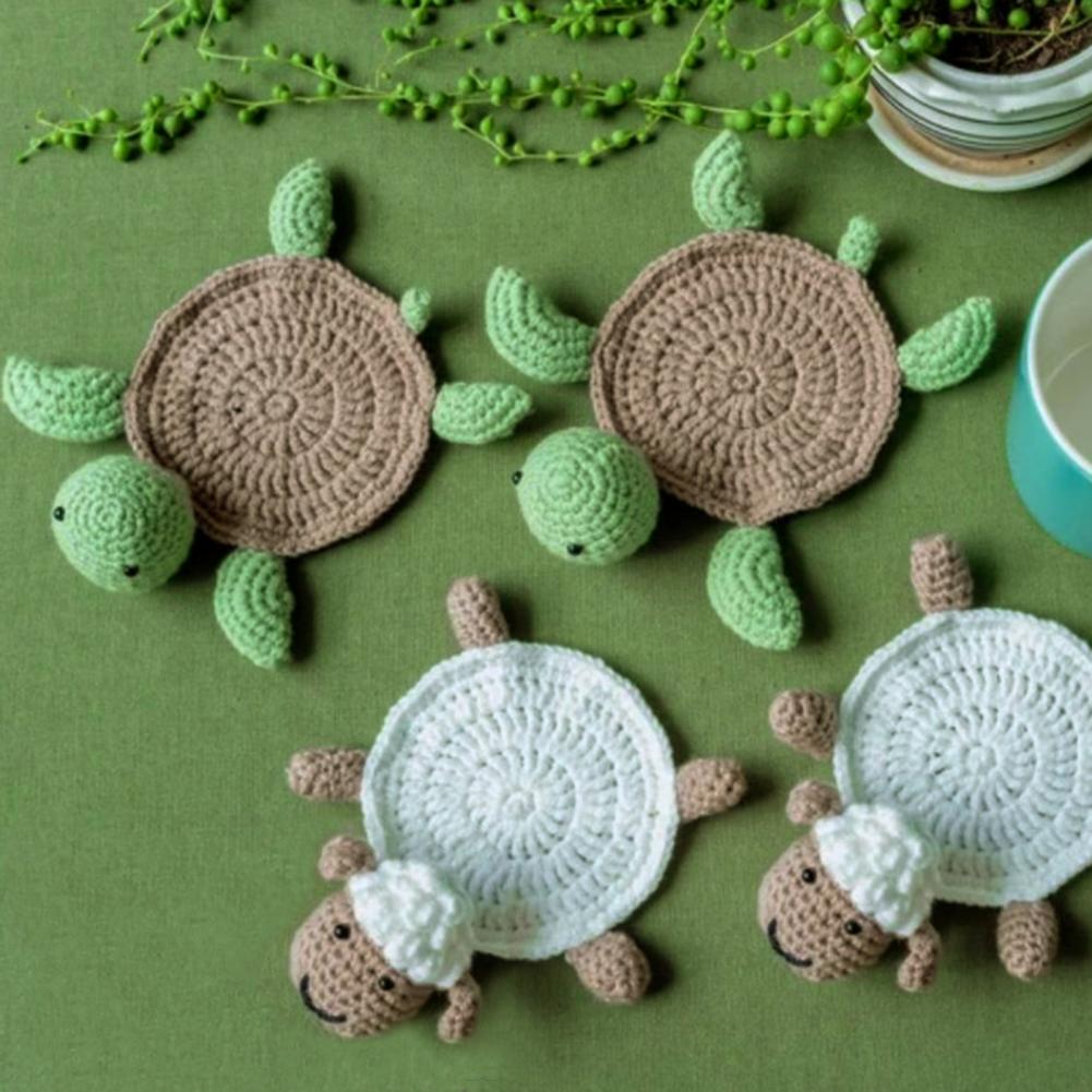 Water-absorbent Placemats Animal-shaped Coasters Adorable Knitted Turtle Coasters Cute Cartoon for Kitchen for Office for Home