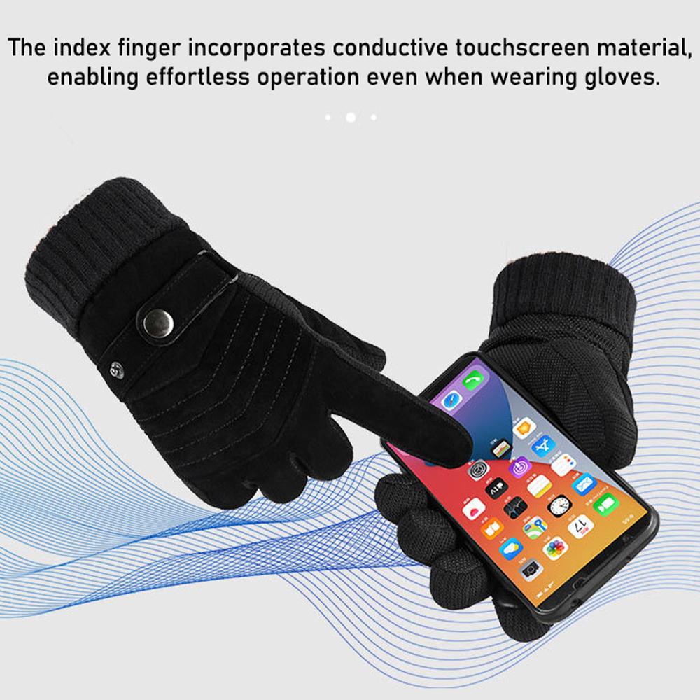 Gloves Men's Winter Cycling Motorcycle Windproof Cold Insulation Durable Warm Leather Touch Screen Anti-Slip Thick Pile